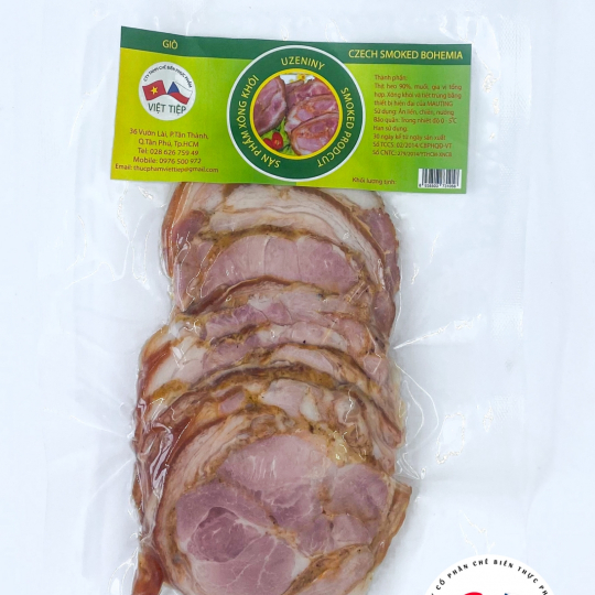 Thịt giò heo, muối, gia vị, tiêu, gừng, bột ngọt, lá nguyệt quế, chất bảo quản